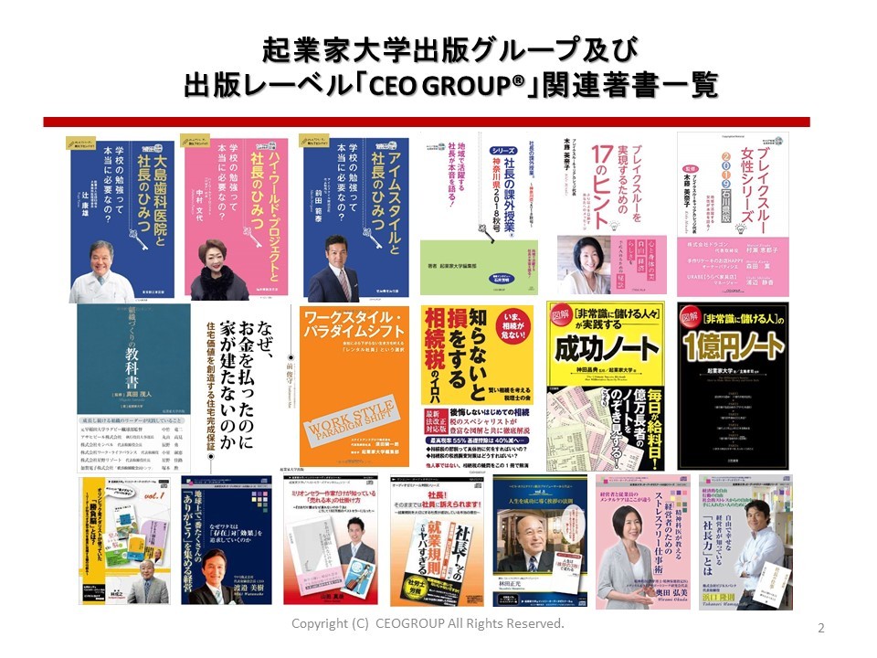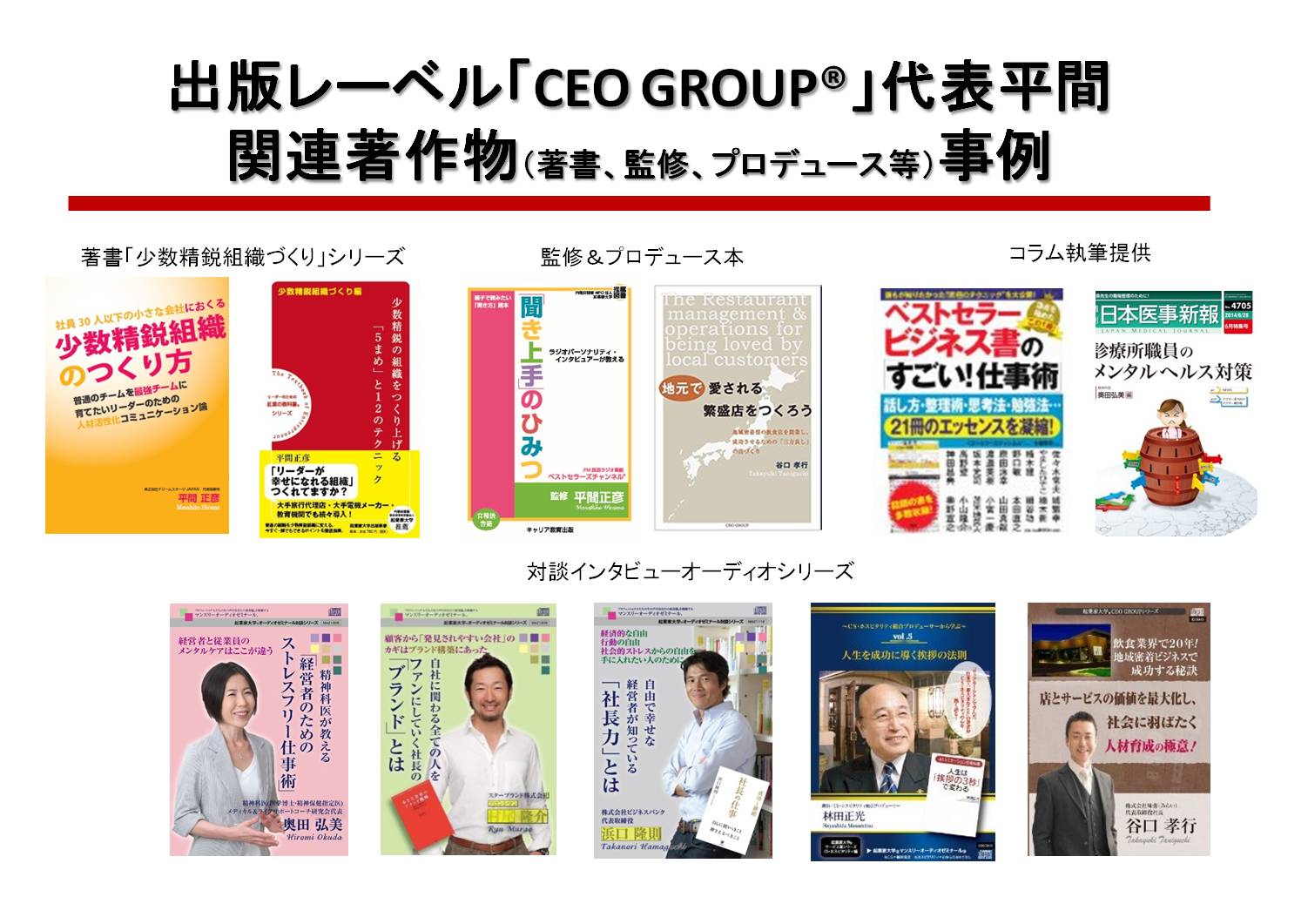 出版レーベル「CEO GROUP」は、多くの出版社や著作の出版顧問をつとめ、経営出版と戦略出版の第一人者である